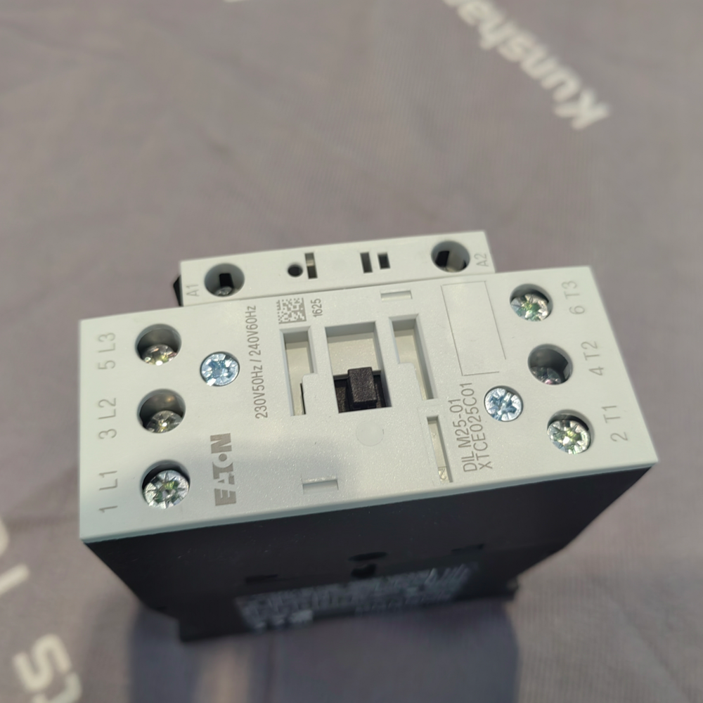 The EATON DILM25-01 (model XTCE025C01F) is a high-performance 3-pole contactor relay belonging to EATON’s Moeller DILM series. It is engineered for reliable control of three-phase AC loads, primarily motors and resistive loads, in industrial automation, machinery, and electrical distribution systems. This contactor serves as an electrically controlled switch, using a low-power control signal to manage high-power main circuits, ensuring safe and efficient power switching for equipment up to 11 kW at 400V AC. It features a compact design, robust construction, and compliance with global standards, making it suitable for diverse industrial applications and easy integration into control panels.