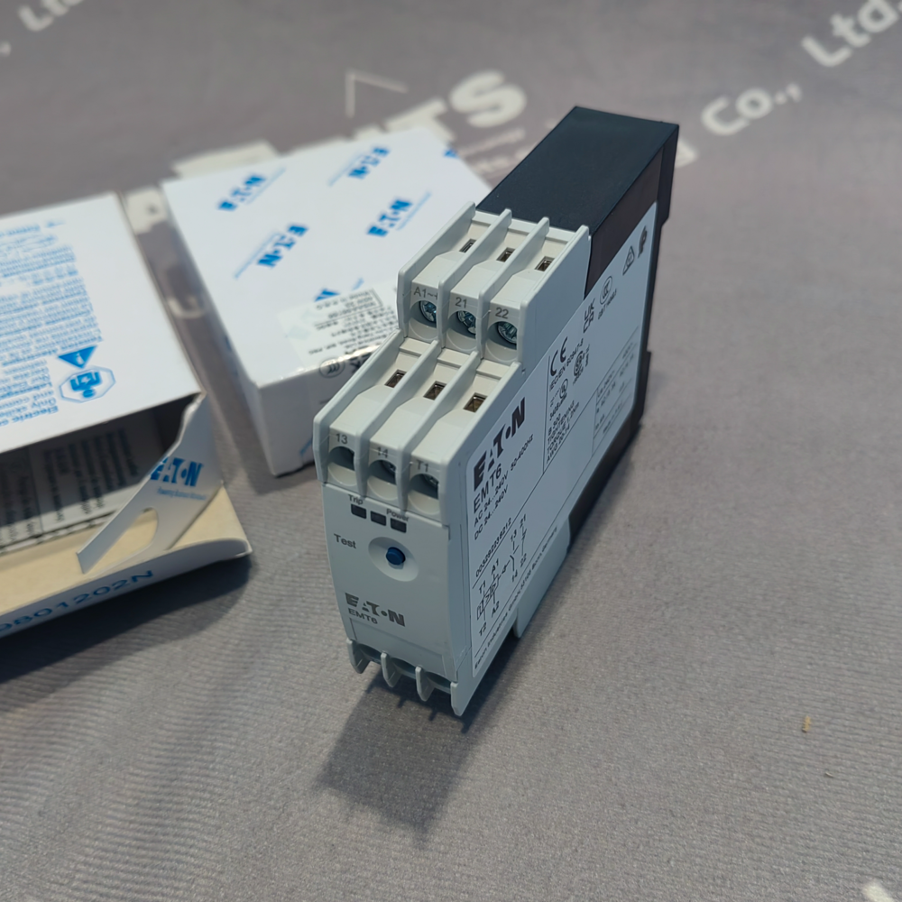 The EATON EMT6 (also referred to as EM t6) is a dedicated thermistor‑based motor protection relay from EATON’s Moeller series, designed for precise, direct temperature monitoring and overheating protection of electric motors and industrial machinery. Unlike conventional thermal overload relays that infer temperature from motor current, the EMT6 utilizes Positive Temperature Coefficient (PTC) thermistor sensors embedded directly in motor windings, bearings, gearboxes, oil, or coolant systems to detect overtemperature conditions with high accuracy. It provides reliable protection against damage caused by heavy starting duties, braking, voltage fluctuations, high switching frequencies, and locked‑rotor scenarios. Certified for global use (UL, CSA, CE, CCC, ATEX for K‑type variants), the EMT6 is ideal for industrial automation, HVAC, pumps, fans, compressors, and general motor control applications, offering robust performance in harsh environments. Fast shipping is available to support urgent project and maintenance requirements.