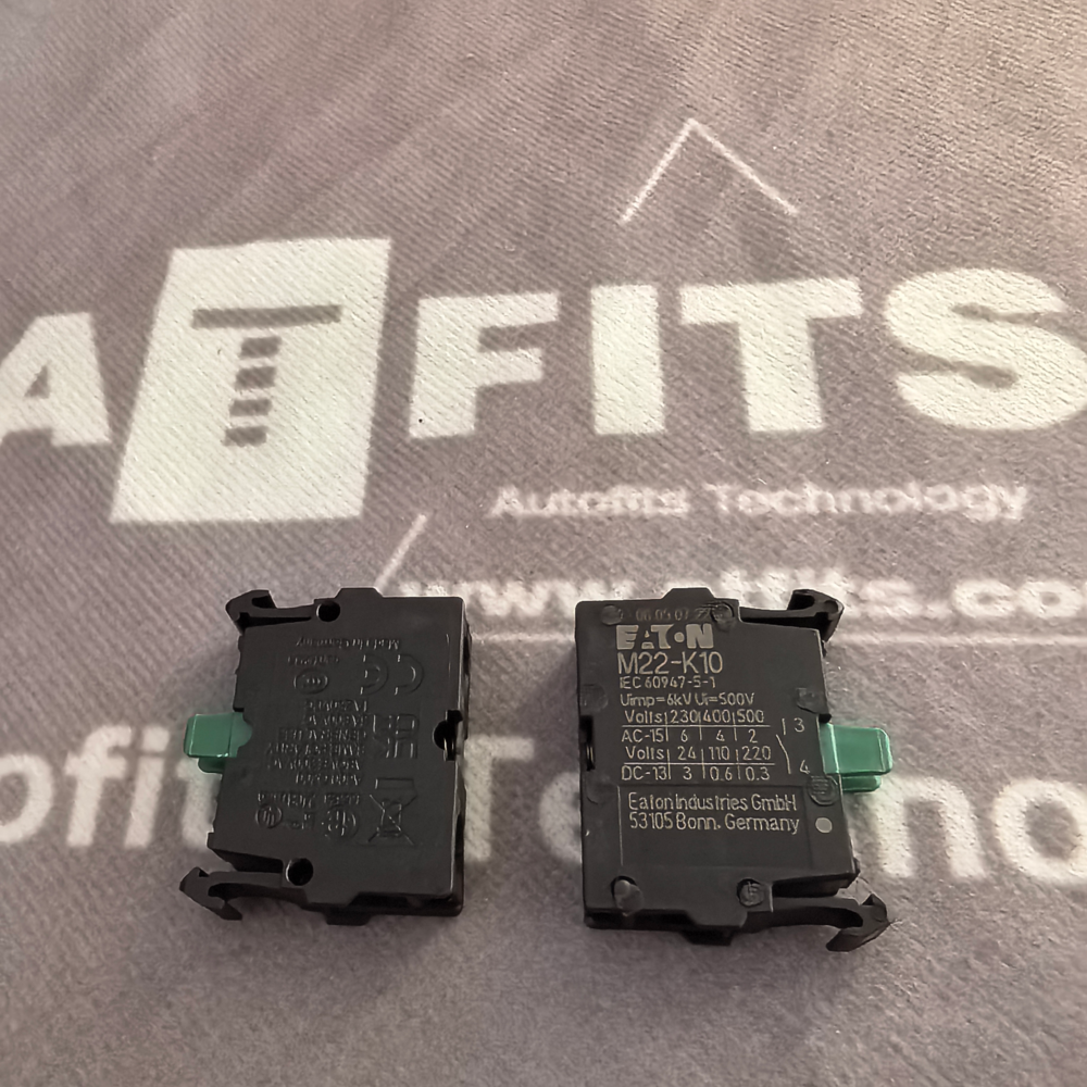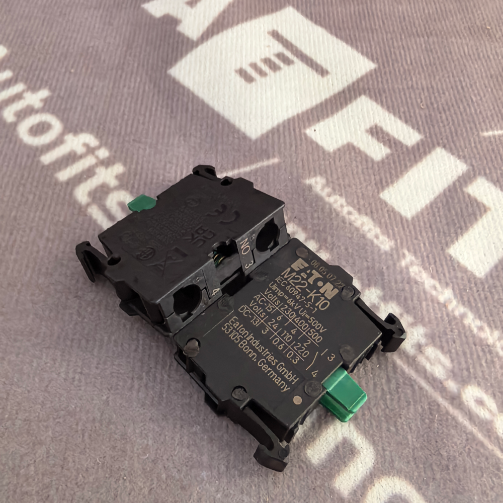 The EATON M22-K10 (also referenced as M22K10) is a high-quality, single-pole contact block belonging to EATON’s RMQ-Titan M22 series, designed exclusively for use with 22.5 mm diameter manual pushbutton switches. As a core switching component, it provides reliable electrical contact switching for control circuits in industrial automation, machinery, control panels, and electrical distribution systems. This contact block features a single Normally Open (NO) contact configuration, screw terminals for secure wiring, and front-panel mounting, making it ideal for non-illuminated pushbutton applications. Built to meet global safety and performance standards, it ensures stable operation in harsh industrial environments, with fast shipping available to support urgent project and maintenance needsEaton.