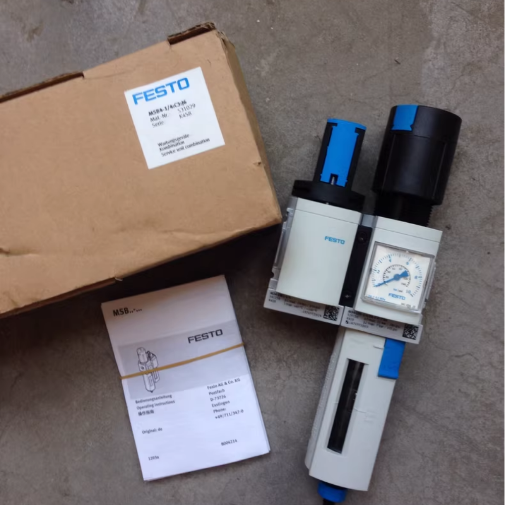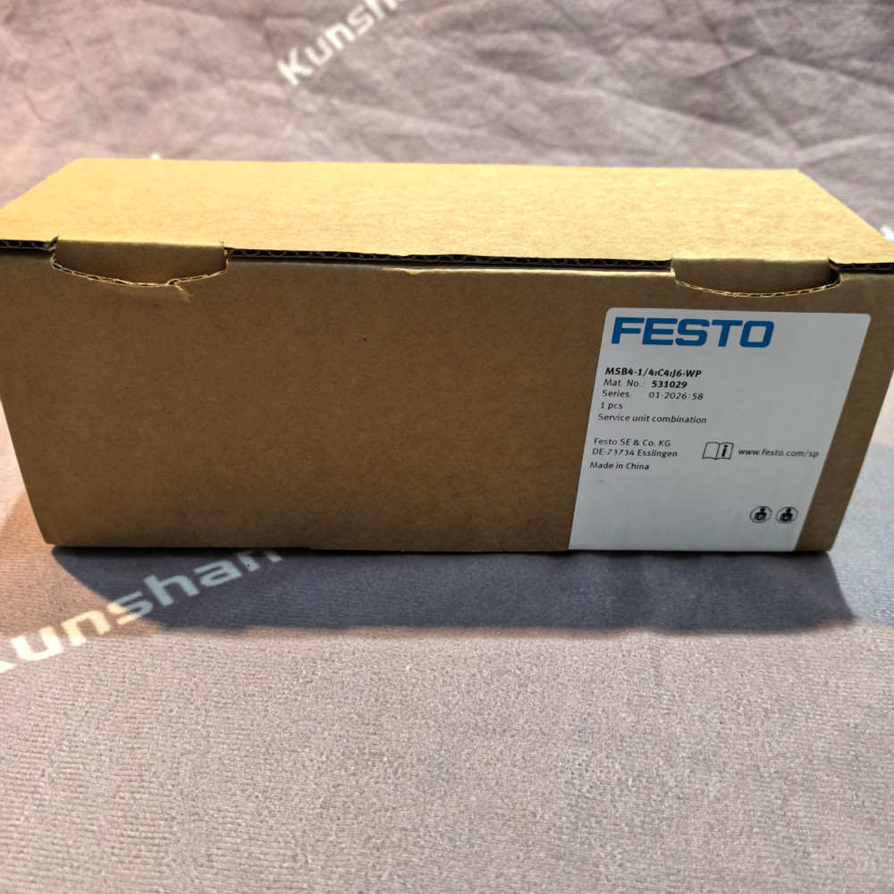 The 531029 MSB4 is a modular compressed air preparation service unit combination manufactured by Festo, belonging to the MS series (Size 4). It is a pre-assembled, all-in-one pneumatic system designed to filter, regulate, lubricate, and safely control compressed air for industrial automation applications. This unit integrates core air treatment functions into a compact, space-saving assembly, ensuring clean, stable, and properly conditioned air supply to pneumatic actuators, valves, and tools. It is suitable for both standard industrial environments and applications requiring high reliability and safety compliance.