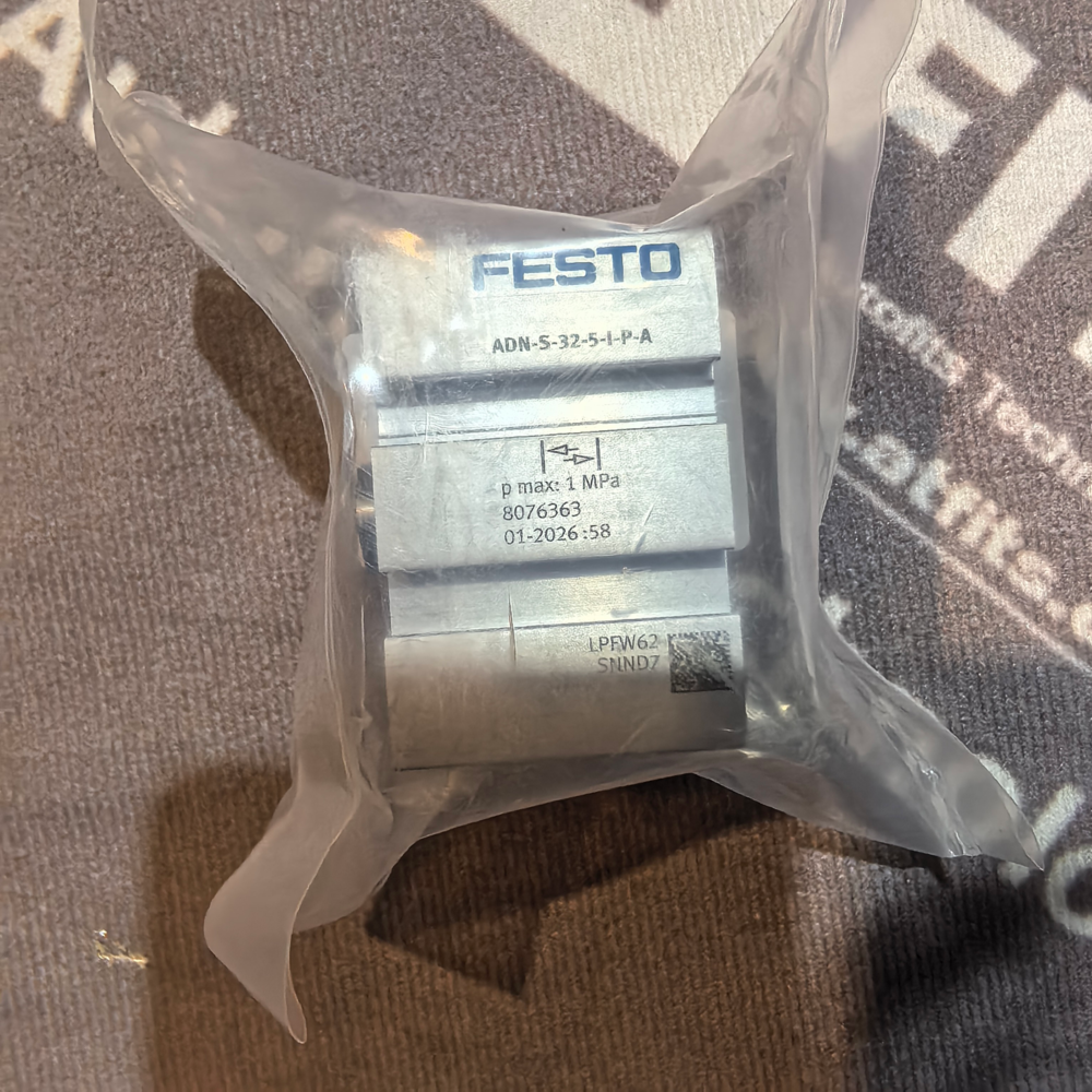 The Festo 8076363 (model ADN-S-32-5-I-P-A) is a high-performance, double‑acting compact pneumatic cylinder from Festo’s ADN‑S series. Designed for space‑constrained industrial automation environments, it delivers precise linear motion with a 32 mm piston bore and 5 mm stroke, optimized for short‑stroke, high‑frequency actuation tasks. Built to the ISO 21287 standard, this cylinder features an integrated magnetic piston for position sensing, elastic end‑position cushioning, and a robust anodized aluminum construction. The “‑S” designation signifies a slim, space‑saving design, while “‑I‑P‑A” denotes an internal piston rod thread, position sensing capability, and elastic cushioning at both ends. It is ideal for compact machinery, assembly lines, pick‑and‑place systems, and precision handling applications where minimal footprint and reliable performance are critical.