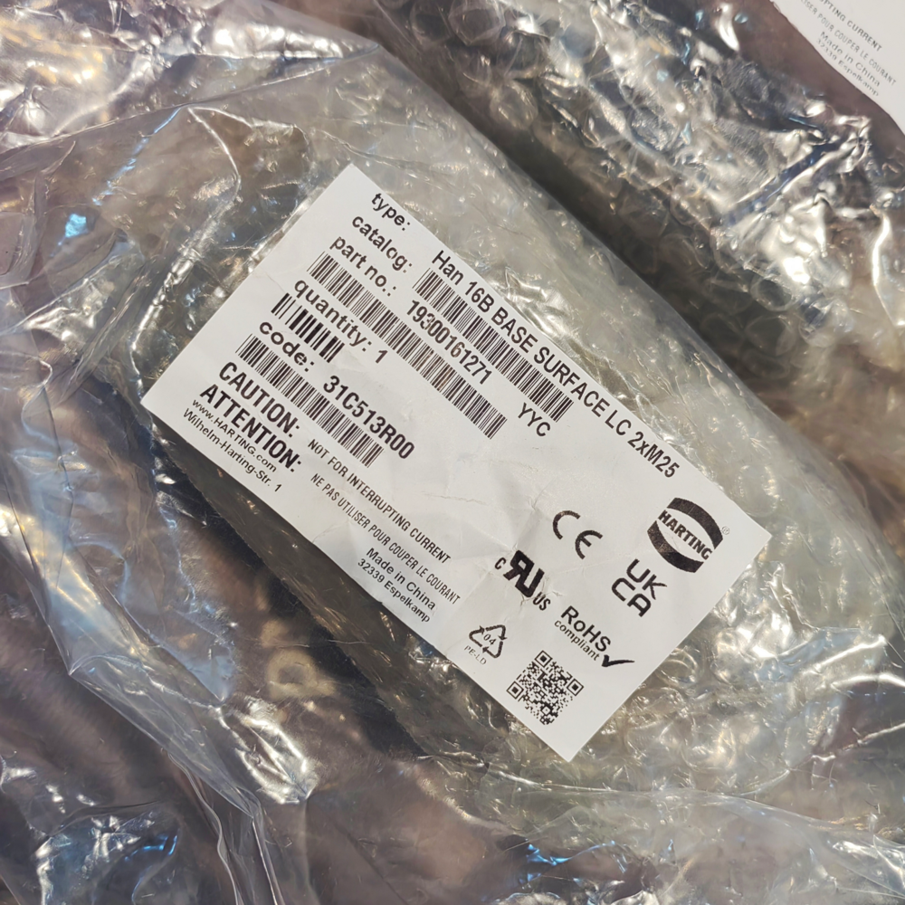In summary, the Harting 19300161271 is a durable, surface-mounted base housing that provides a secure, sealed, and standardized mounting point for Han 16B connector inserts in demanding industrial environments.