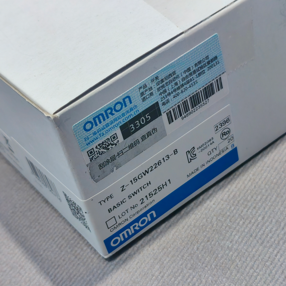 The Omron Z-15GW22613-B is a high-precision, standard-sized micro switch, also widely known as a basic switch or snap-action switch. These switches are fundamental components used for detecting position, limit sensing, and interlock control in a vast range of industrial machinery, appliances, and control panels.