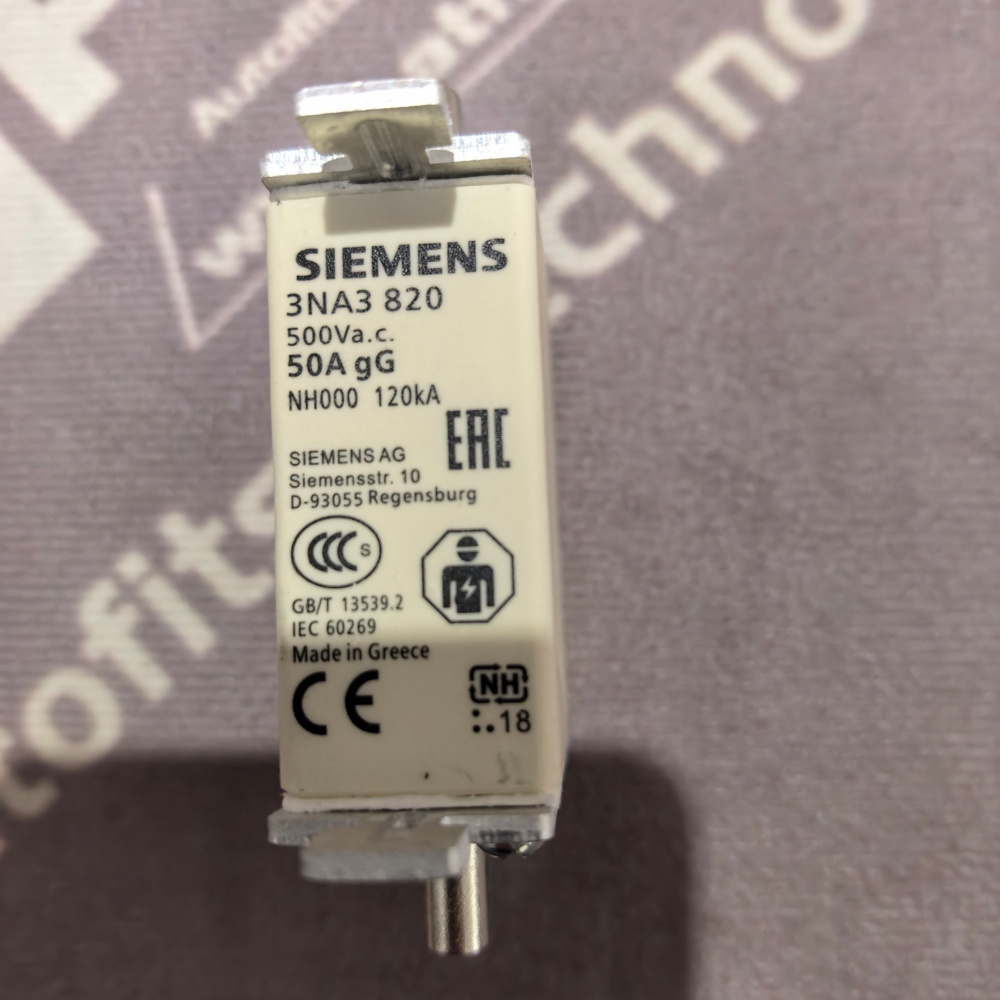 Siemens 3NA3820 LV HRC Fuse Element (50A, 500V, NH000)