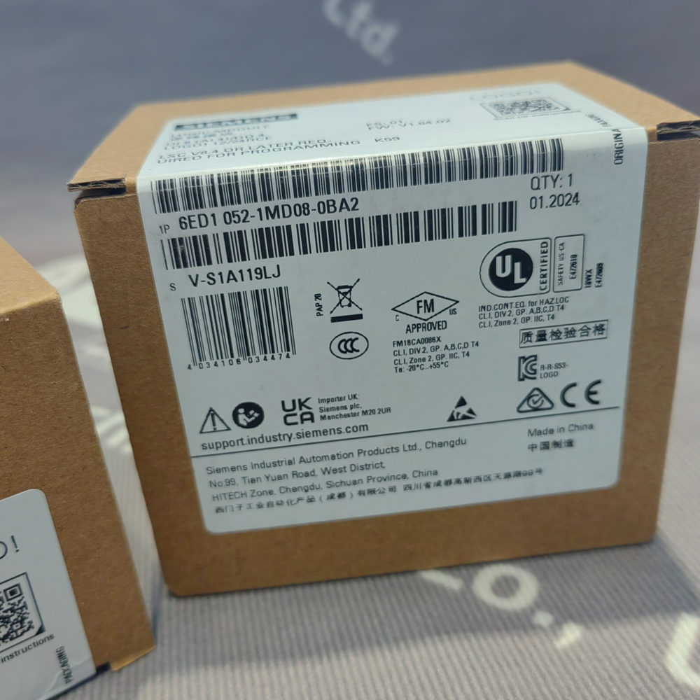 The Siemens 6ED1 052-1MD08-0BA2 is a compact logic module from the LOGO! series, designed for small automation tasks. It features an integrated display, easy programming, and flexible input/output options, making it ideal for control panels, machinery, building automation, and simple process control applications.
