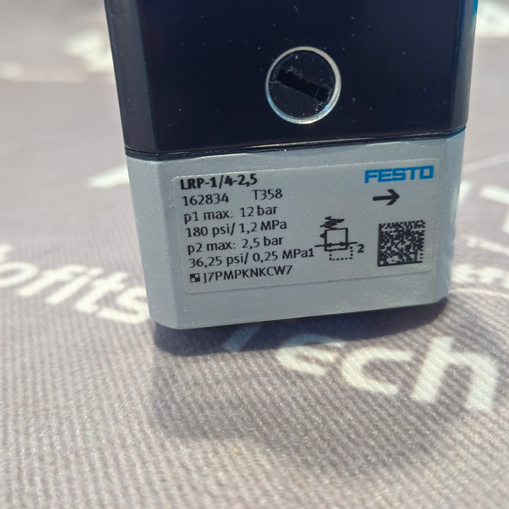 The Festo LRP-1/4-2,5 is a high-quality precision pressure regulator designed for applications that demand exceptional control and stability of the secondary pressure. It is specifically used to maintain a constant and highly accurate outlet pressure, regardless of fluctuations in the primary inlet pressure or variations in air consumption.