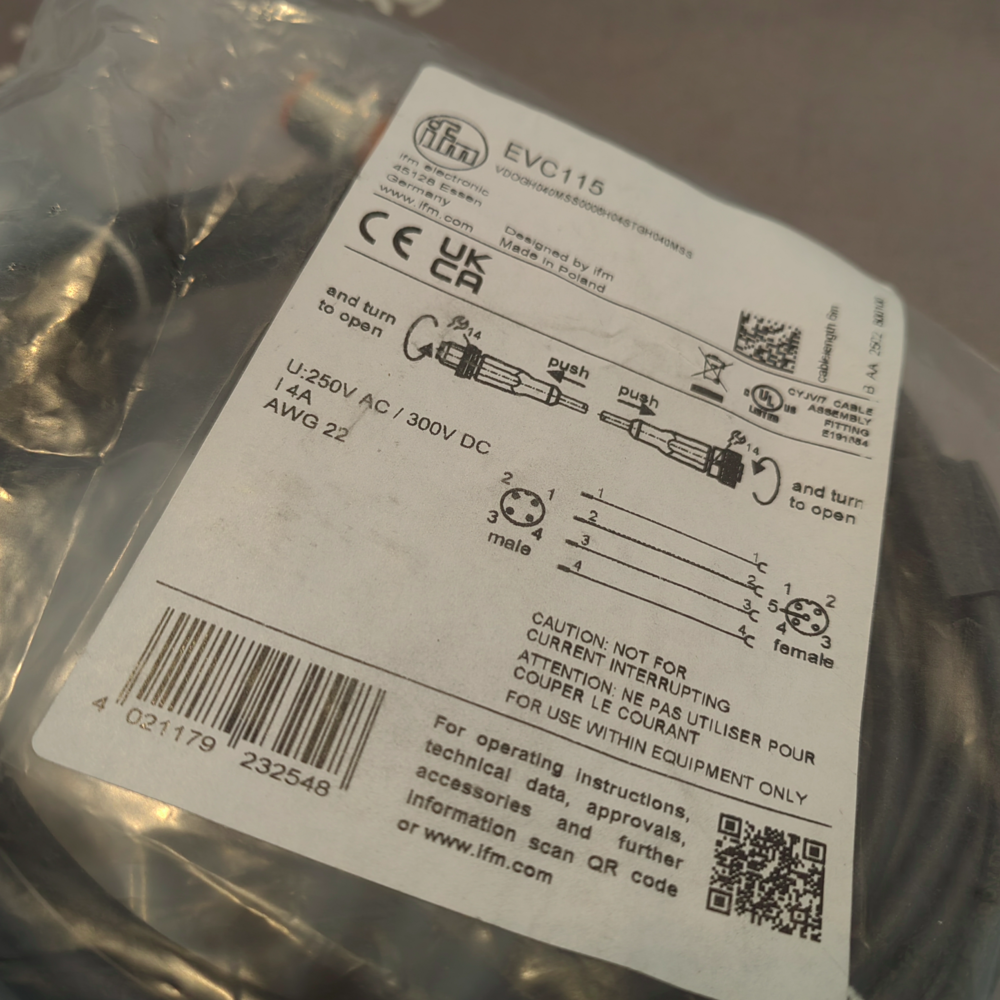 The IFM EVC115 is a high-quality connection cable designed to link IFM sensors and devices to controllers or evaluation units. It ensures reliable signal transmission and stable communication in industrial automation systems.