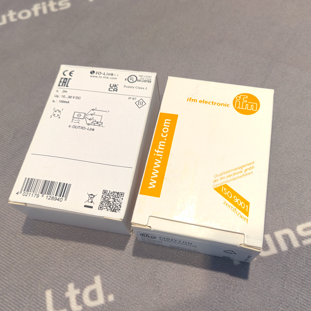 The IFM O5D100 Laser Distance Sensor is a high-performance device designed for industrial automation, leveraging time-of-flight technology to deliver accurate, reliable distance detection in harsh industrial settings. It uses a 650 nm red Laser Class 2 light, enabling color-independent detection (even on glossy surfaces) and oblique angle sensing, with background suppression up to <20m to filter out unwanted interference.
