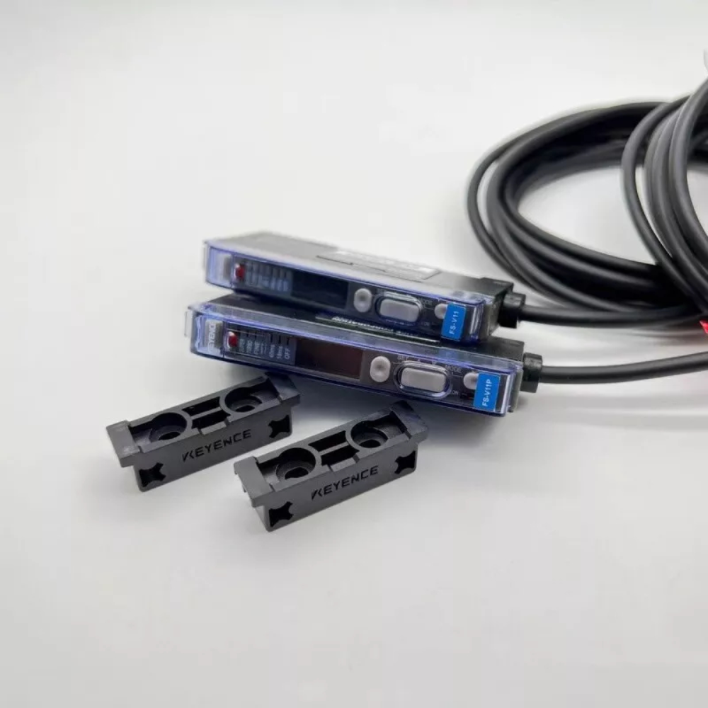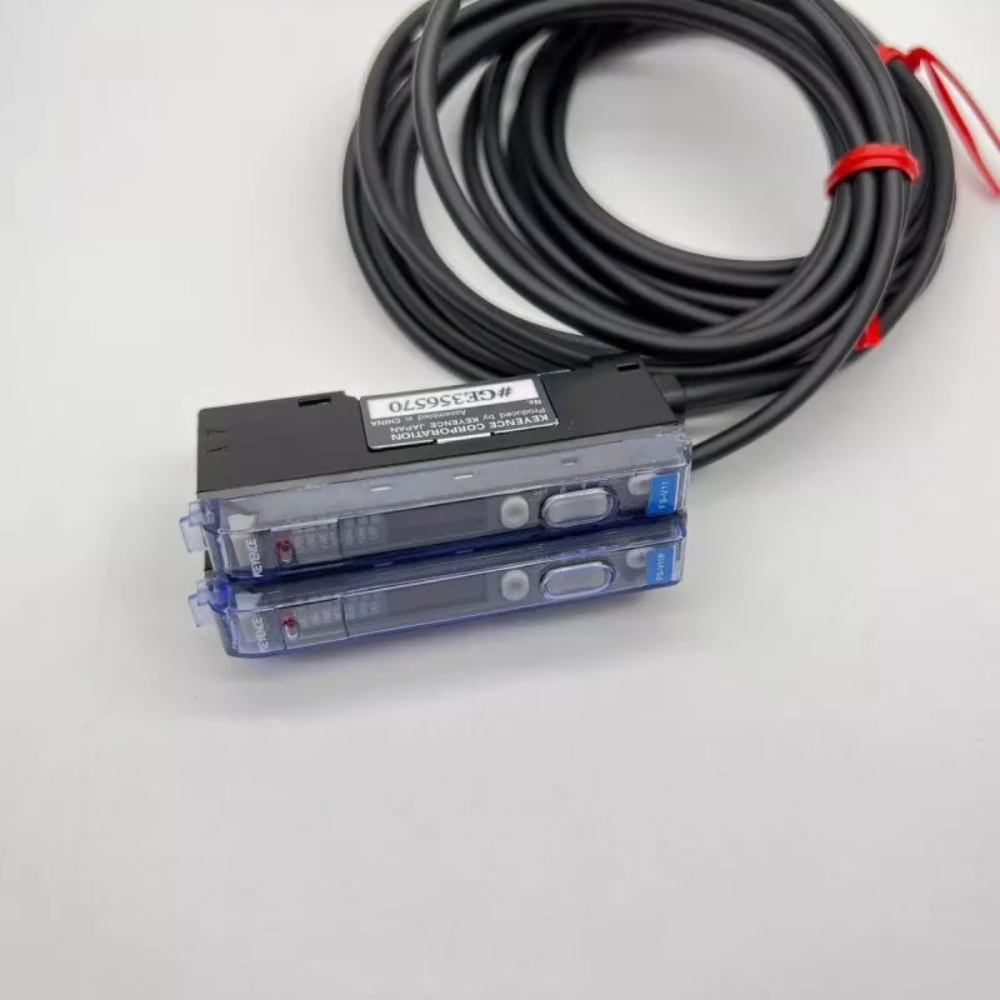 The Keyence FS-V11P is a PNP main unit digital fiber optic sensor amplifier, engineered for precision non-contact detection in industrial automation, ideal for electronics manufacturing, automotive component assembly, packaging quality control, and semiconductor processing. It pairs with Keyence fiber optic cables, using a red LED light source to analyze light-intensity changes from the fiber head for detecting diverse objects—including metals, plastics, glass, and transparent materials. It integrates a 4-digit LED digital display and bar LED monitor for real-time signal visualization, and supports mutual interference suppression and unit expansion, ensuring stable performance in multi-sensor industrial environments. Its compact DIN-rail-mountable design, switch-controlled setup, and robust protection circuits enable easy integration, making it a reliable choice to enhance detection accuracy and operational efficiency in automated production lines.