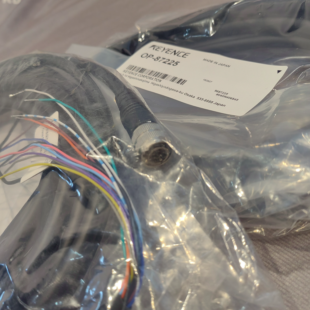 The Keyence OP-87225 is a 5-meter shielded control cable designed exclusively for Keyence SR series 1D/2D code readers, including SR-1000, SR-2000, SR-650, and SR-D100 series. It serves as a reliable link for transmitting power, control signals, and I/O data between the code reader and external control systems (e.g., PLCs, HMIs) in industrial automation setups. Built with a shielded twisted-pair internal structure, a durable PVC jacket, and secure locking 12-pin connectors, the cable ensures stable, interference-free signal transmission even in high-noise factory environments. Its 5-meter fixed length caters to medium-distance installation requirements, eliminating the need for splicing and reducing potential signal loss points. With robust resistance to mechanical wear, vibration, and temperature variations, it is an ideal accessory for barcode reading applications in electronics manufacturing, food packaging, and logistics sorting lines where consistent data transfer and flexible installation are critical.