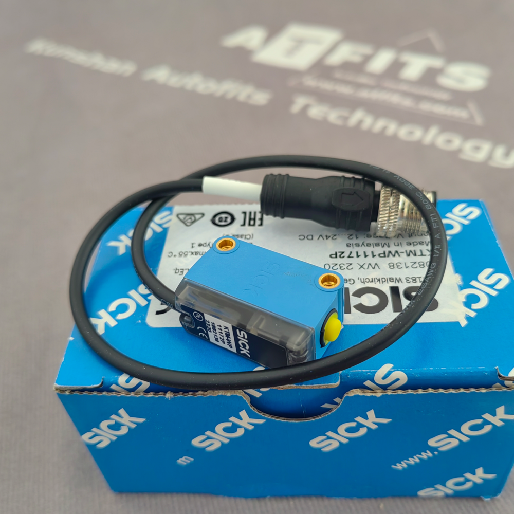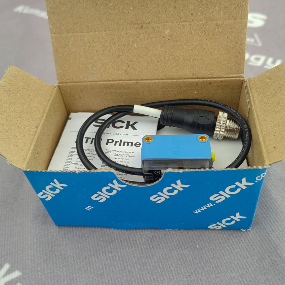 The SICK KTM-WP11172P (Order No. 1082138) is a compact, high-performance contrast sensor from SICK’s KTM Prime series, specialized in detecting contrast differences on object surfaces for industrial automation. It utilizes an RGB LED light source (470 nm, 525 nm, 625 nm) with a vertical light spot (1.6 mm × 9.5 mm) for stable contrast identification, boasting a max sensing distance of 12.5 mm and a 15 kHz switching frequency for high-speed operationsSICK. It features a teach-in button for easy setup, an M8 4-pin connector for seamless integration, and an IP67-rated plastic housing, making it suitable for confined spaces and harsh industrial environments like packaging, printing, and labeling linesSICK.