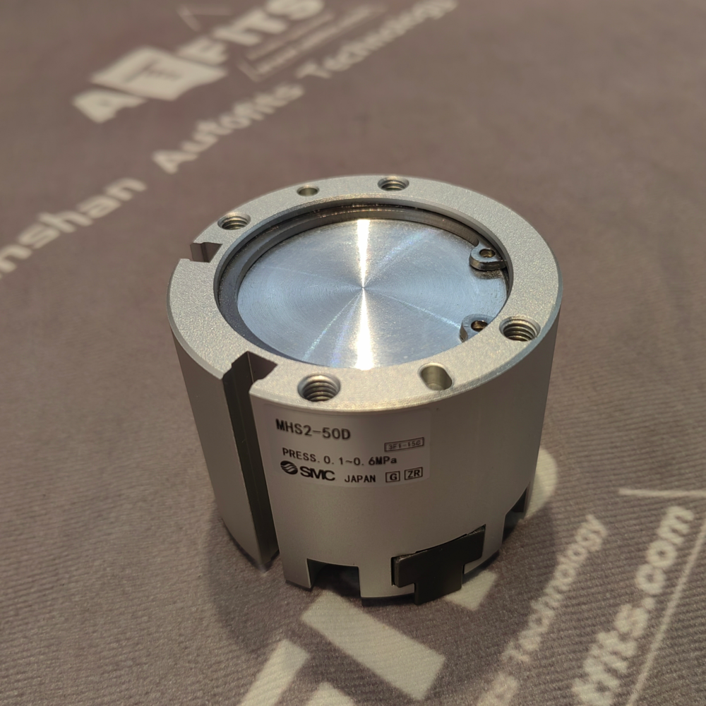 The SMC MHS2-50D is a 2-finger parallel-style pneumatic gripper from SMC’s MHS2 series, designed for medium-to-heavy – duty industrial automation tasks requiring robust, precise gripping and handling of workpieces. It has a 50 mm bore diameter and a double – acting wedge cam mechanism, which converts linear piston motion into synchronous parallel jaw movement, ensuring stable and balanced clamping force. This gripper is suitable for external – diameter (OD) and internal – diameter (ID) gripping of cylindrical, rectangular, or irregular workpieces in automotive component assembly, machinery manufacturing, and heavy – duty material handling. It integrates a slide guide system for high positional repeatability (±0.01 mm) and lateral load resistance. The round, vertically compact body design allows flexible mounting on robotic arms, linear actuators, or fixtures, and it can be equipped with magnetic proximity sensors for real – time position feedback. It meets industrial durability standards and delivers reliable performance with minimal maintenance in typical operating environments.