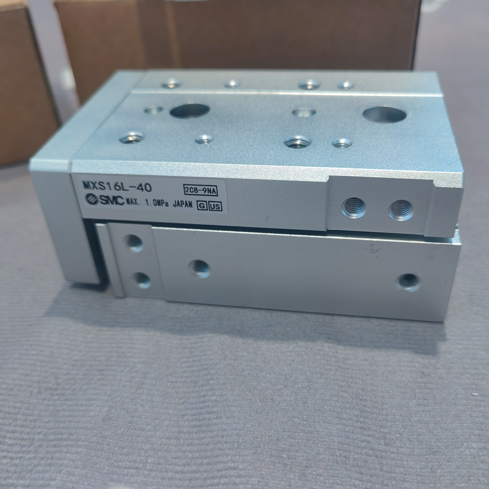 The SMC MXS16L-40 is a high-precision, double-acting pneumatic guided cylinder (slide table) from SMC’s MXS series, featuring a 16 mm bore, 40 mm stroke, and a cross-roller guide for exceptional rigidity and stable linear motion. It integrates a dual-piston rod structure with a compact slide table, delivering twice the thrust of conventional single-rod designs while maintaining a low-profile form factor. This cylinder is ideal for precision positioning, small-part transfer, and automated assembly tasks in electronics manufacturing, automotive component assembly, and robotic pick-and-place systems, where ±0.01 mm repeatability and minimal rotational deviation are critical. The built-in magnetic ring supports magnetic switches for real-time position feedback, and the lubrication-free design ensures maintenance-free operation in standard industrial environments. Its cross-roller guide eliminates play, enabling smooth, backlash-free movement, and the integrated structure reduces installation complexity compared to separate guide-and-cylinder setups.